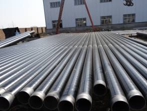 加強(qiáng)級(jí)無(wú)縫3PE防腐鋼管防腐結(jié)構(gòu)及原理,聚乙烯三層結(jié)構(gòu)防護(hù)層又稱(chēng)三層PE(3PE),是近幾年從國(guó)外引進(jìn)的先進(jìn)的防腐技術(shù)。它的全稱(chēng)為熔結(jié)環(huán)氧/擠塑聚乙烯結(jié)構(gòu)防護(hù)層,結(jié)構(gòu)由以下三層組成:底層為熔結(jié)環(huán)氧(≥80μm);中間層為膠粘劑(170-250μm);面層為擠塑聚乙烯(約2mm)。防護(hù)層總厚度約1.8-3.7mm。在三層結(jié)構(gòu)中,熔結(jié)環(huán)氧粉末涂層的主要作用是:形成連續(xù)的涂膜,與鋼管表面直接粘結(jié),具有很好的耐化學(xué)腐蝕性和抗陰極剝離性能;與中間層膠粘劑的活性基團(tuán)反應(yīng)形成化學(xué)粘結(jié),保證整體防腐層在較高溫度下具有良好的粘結(jié)性。中間層通常為共聚物粘結(jié)劑,其主要成分是聚烯烴,目前廣泛采用的是乙烯基共聚物膠粘劑。共聚物膠粘劑的極性部分官能團(tuán)與熔結(jié)環(huán)氧粉末涂層的環(huán)氧基團(tuán)可以反應(yīng)生成氫鍵或化學(xué)鍵,使中間層與底層形成良好的粘結(jié);而非極性的乙烯部分與面層聚乙烯具有很好的親合作用,所以中間層與面層也具有很好的粘結(jié)性能。聚乙烯面層的主要作用是起機(jī)械保護(hù)與防腐作用,與傳統(tǒng)的二層結(jié)構(gòu)聚乙烯防腐層具有同樣的作用。